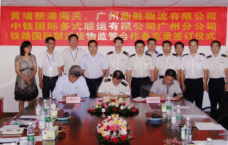 为加强海关监管,促进地方经济发展,方便合法进出,为广州鼎胜物流有限公司(简称GPL)开展国际联运业务共同营造严密高效的通关环境,8月16日,黄埔新港海关邱辉副关长、GPL冯廷耀总经理及中铁国际多式联运有限公司广州分公司冯奕续总经理代表相关单位共同签署《关于国际铁路联运货物监管的合作备忘录》,标志着GPL国际铁路联运业务正式开通。
