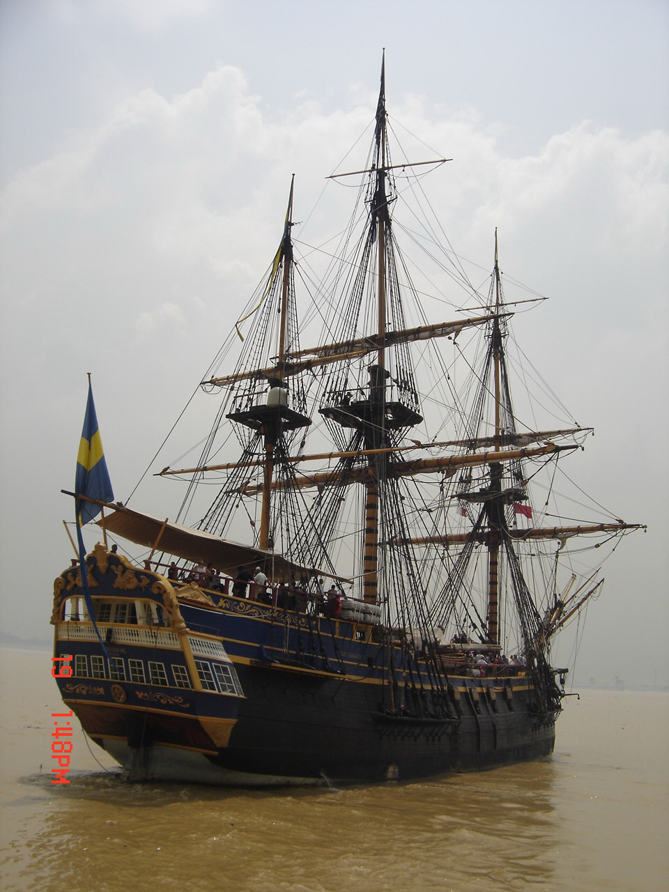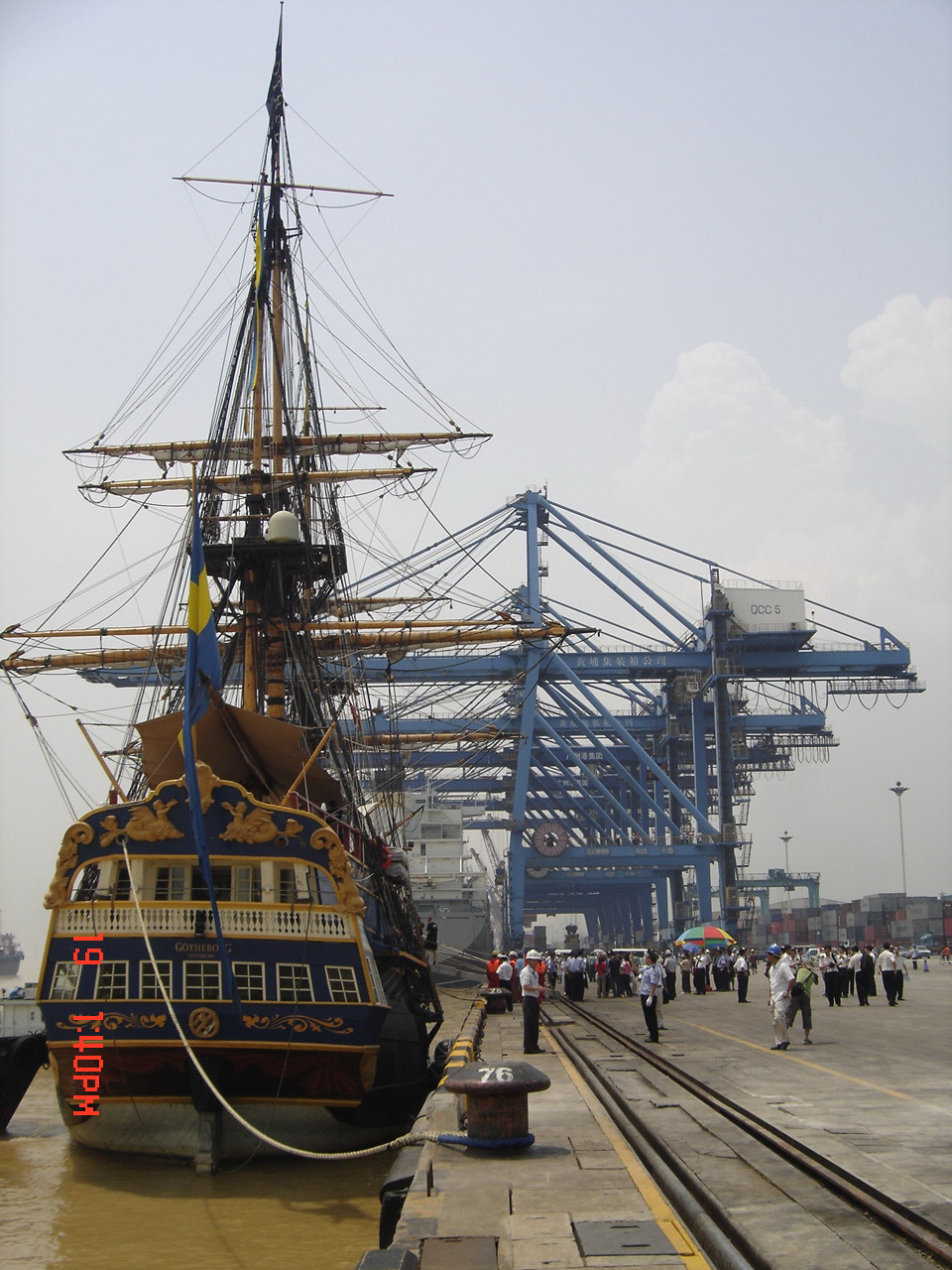 2006年7月19日13时,“来了!来了!”,伴随着众多围观群众的阵阵欢呼声,世界上最大的仿古木制帆船“哥德堡”号成功靠泊GCT新沙码头。